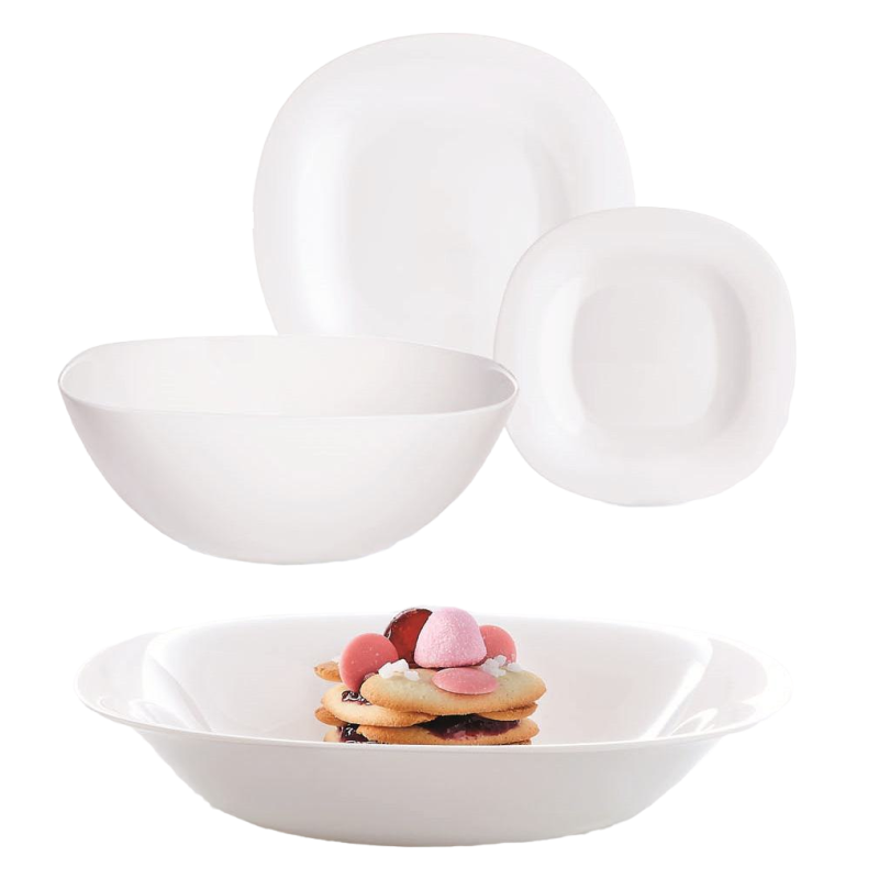 | Комплектація | Тарілка десертна 6 шт. (19 см) Тарілка обідня 6 шт. (27 см) Тарілка супова 6 шт. (20 см) Салатник 1шт. (27 см) |