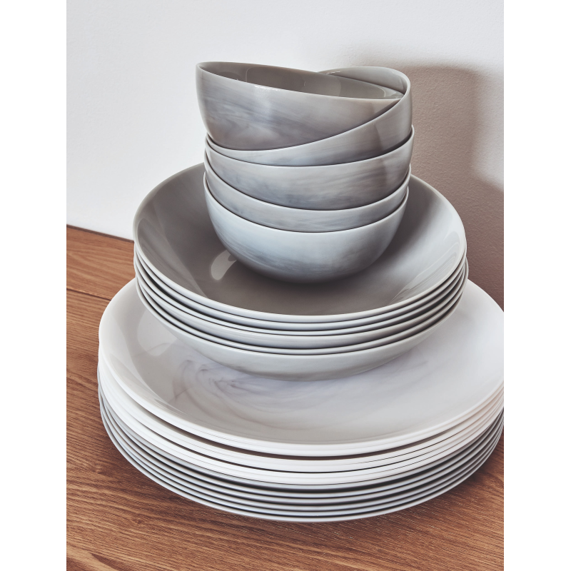 | Комплектація | Салатник великий 1 шт. (21 см) Тарілка обідня 6 шт. (25 см) Тарілка глибока 6 шт. (20 см) Тарілка десертна 6 шт. (19 см) |