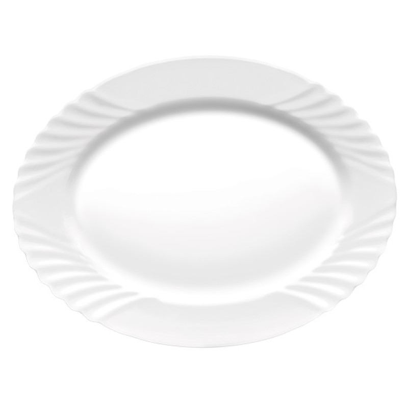 Овальне блюдо, призначене для подачі закусок, других блюд і гарнірів, як до столу, так і для фуршету, прикрашене витонченим декором по краю, а також доступне в меншому форматі.
