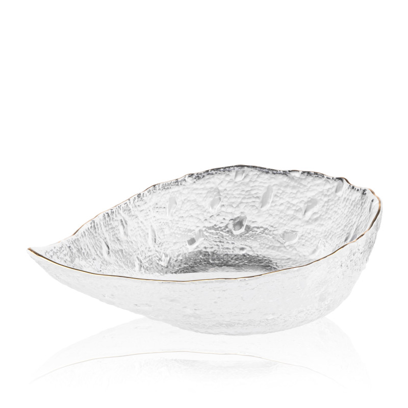 Салатник Leaf вироблено з якісного скла, має рифлену поверхню, що додає йому витонченого шарму. Розміром 12,5 × 17,5 см і заввишки 5 см цей прозорий салатник стане чудовим акцентом столового сервірування, підкреслюючи красу поданих страв. Виріб не призначено для використання в посудомийній машині чи мікрохвильовій печі. Дбайливий ручний догляд забезпечує тривале слугування посуду й незмінну прозорість.