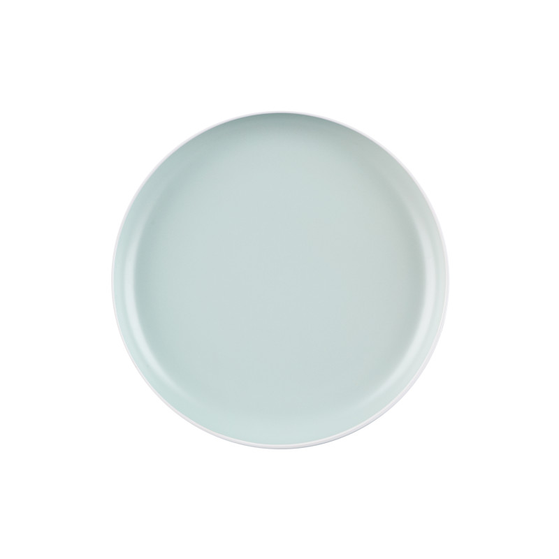 Керамічна обідня тарілка пастельного блакитного кольору діаметром 26,5 см. Виготовлено з екологічно чистого матеріалу. Можна мити в посудомийній машині та використовувати в мікрохвильовій печі.