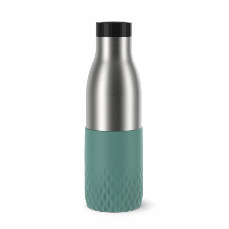 Термопляшка Tefal Bludrop поєднує нержавіючу сталь, силіконовий рукав і кришку Quick-Press 360° для зручного пиття з будь-якого боку. Вакуумна ізоляція зберігає тепло до 12 годин і прохолоду до 24 годин. Корпус і кришка придатні до миття в посудомийній машині. Герметична конструкція забезпечує спокійне транспортування в рюкзаку чи сумці.