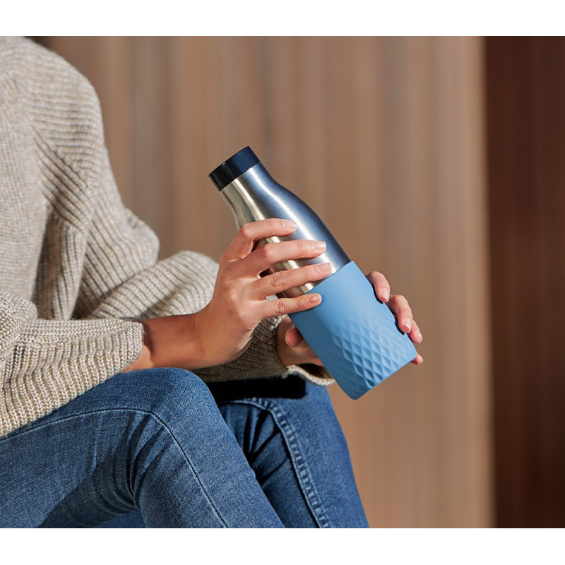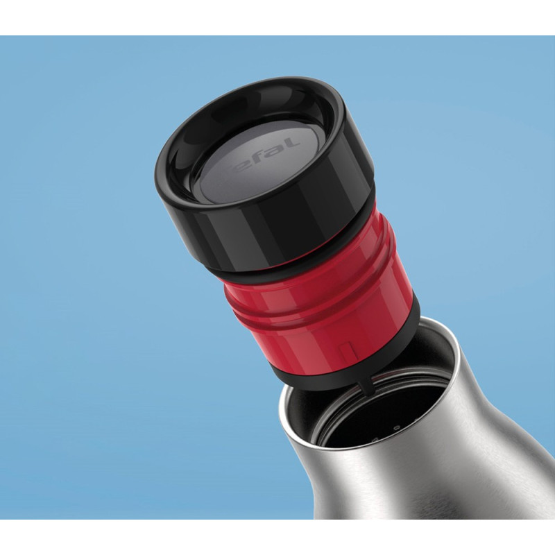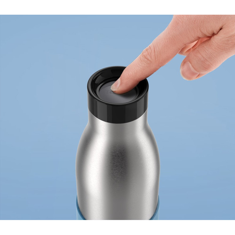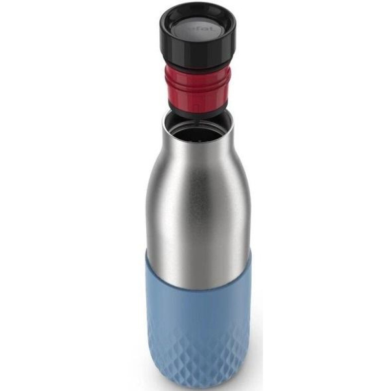Термопляшка Tefal Bludrop поєднує нержавіючу сталь, силіконовий рукав і кришку Quick-Press 360° для зручного пиття з будь-якого боку. Вакуумна ізоляція зберігає тепло до 12 годин і прохолоду до 24 годин. Корпус і кришка придатні до миття в посудомийній машині. Герметична конструкція забезпечує спокійне транспортування в рюкзаку чи сумці.