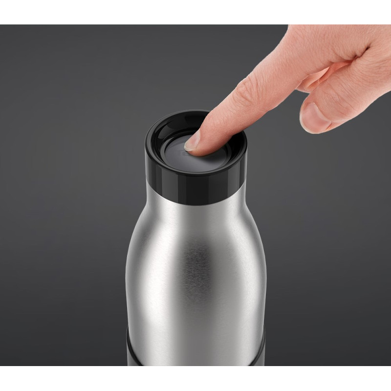 Термопляшка Tefal Bludrop поєднує нержавіючу сталь, силіконовий рукав і кришку Quick-Press 360° для зручного пиття з будь-якого боку. Вакуумна ізоляція зберігає тепло до 12 годин і прохолоду до 24 годин. Корпус і кришка придатні до миття в посудомийній машині. Герметична конструкція забезпечує спокійне транспортування в рюкзаку чи сумці.