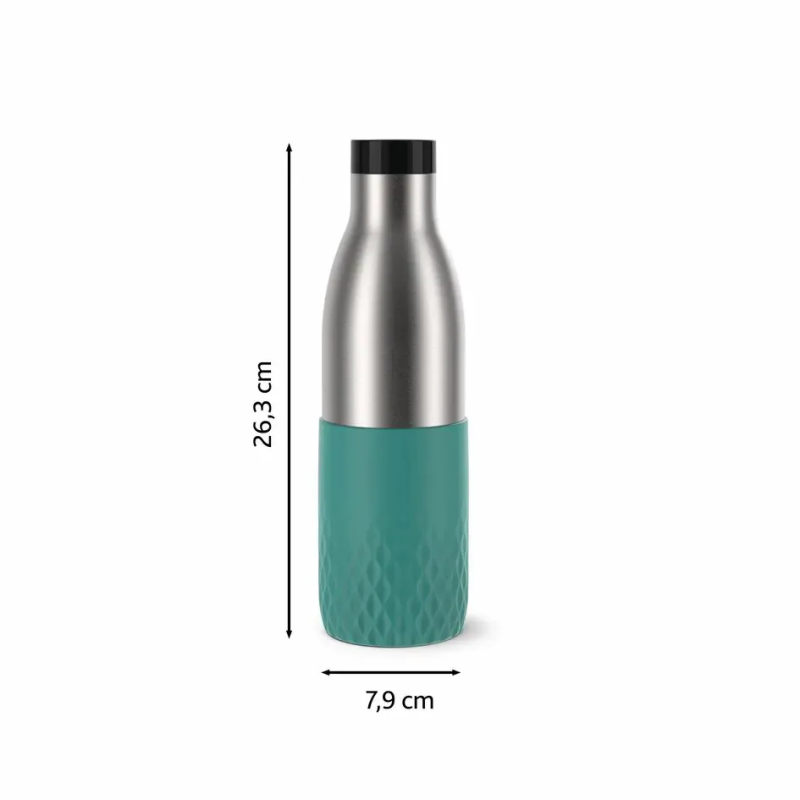 Термопляшка Tefal Bludrop поєднує нержавіючу сталь, силіконовий рукав і кришку Quick-Press 360° для зручного пиття з будь-якого боку. Вакуумна ізоляція зберігає тепло до 12 годин і прохолоду до 24 годин. Корпус і кришка придатні до миття в посудомийній машині. Герметична конструкція забезпечує спокійне транспортування в рюкзаку чи сумці.