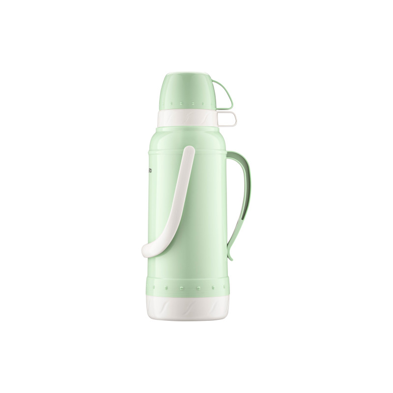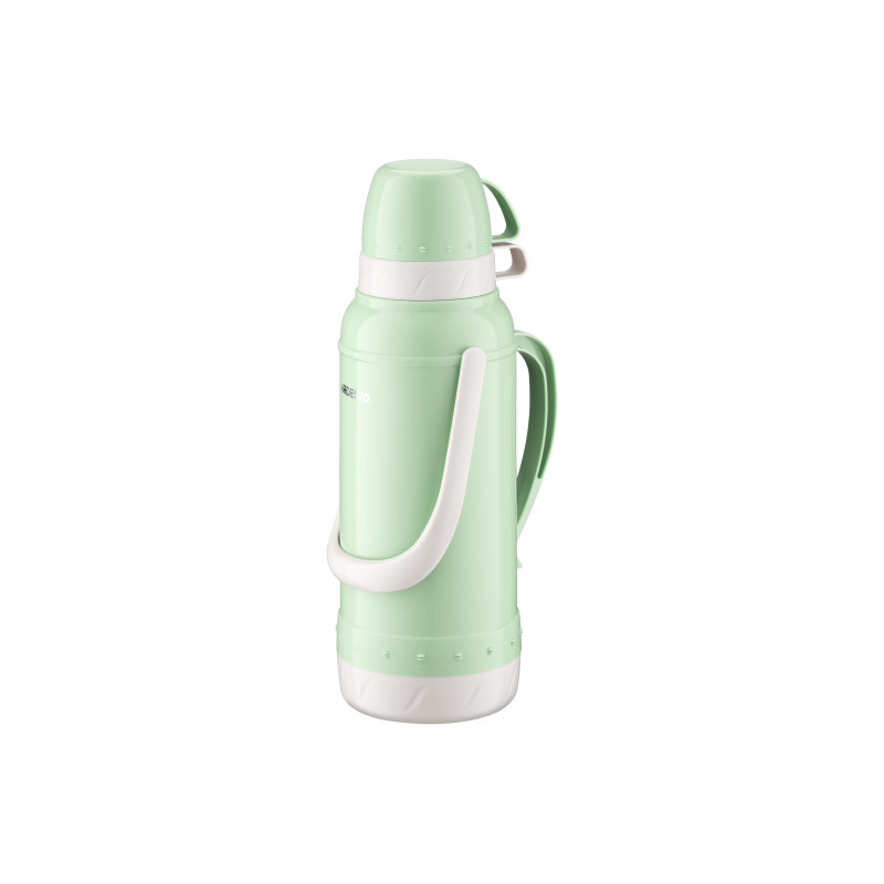 Термос ARDESTO Gemini Gourmet виготовлено з пластику зеленого кольору. Об’єм становить 2 000 мл. У комплекті 2 чашки. Скляна колба добре утримує тепло, не поглинає сторонніх запахів і не вступає в реакцію з продуктами. Термос оснащено кришкою з різьбою, що щільно прилягає, унеможливлюючи протікання та зберігаючи температуру гарячого та холодного напою 24 год. Догляд за посудом нескладний, проте мити в посудомийній машині не можна.