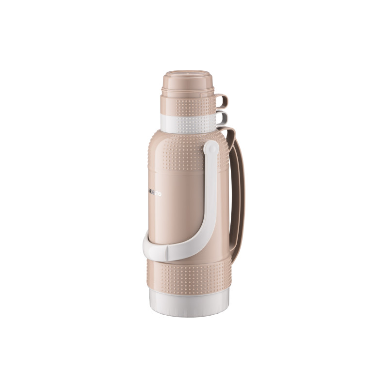 Термос ARDESTO Gemini Gourmet виготовлено з пластику коричневого кольору. Об’єм становить 3 200 мл. У комплекті 2 чашки. Скляна колба добре утримує тепло, не поглинає сторонніх запахів і не вступає в реакцію з продуктами. Термос оснащено кришкою з різьбою, що щільно прилягає, унеможливлюючи протікання та зберігаючи температуру гарячого та холодного напою 24 год. Догляд за посудом нескладний, проте мити в посудомийній машині не можна.