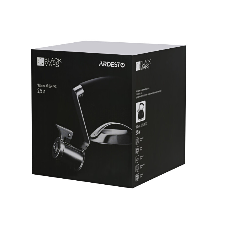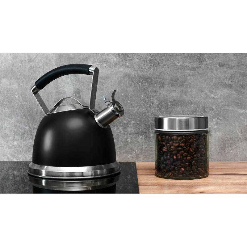 Чайник з нержавіючої сталі та покриттям чорного кольору. За рахунок капсульного дна, він сумісний з усіма видами плит, включаючи індукційну.