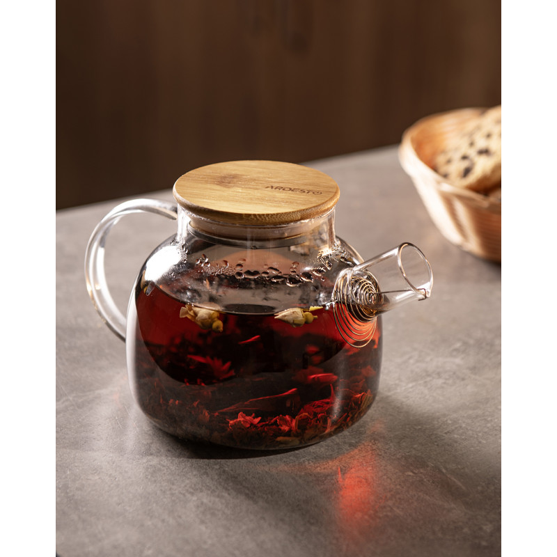 Заварник ARDESTO Gemini 800мл, боросилікатне скло, бамбук, прозорий