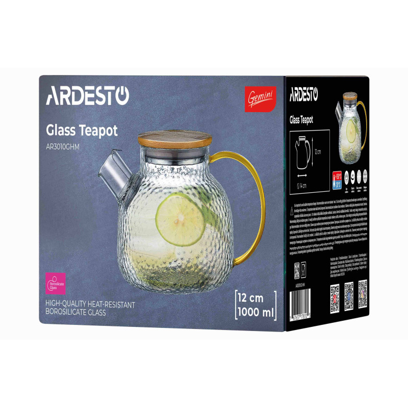 Заварник ARDESTO Gemini Dew 1000мл, боросилікатне скло, бамбук, прозорий