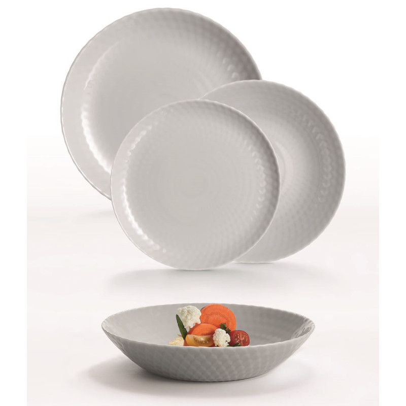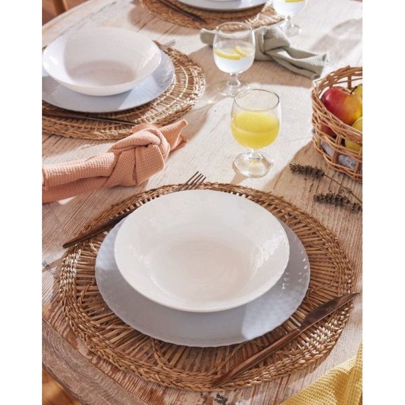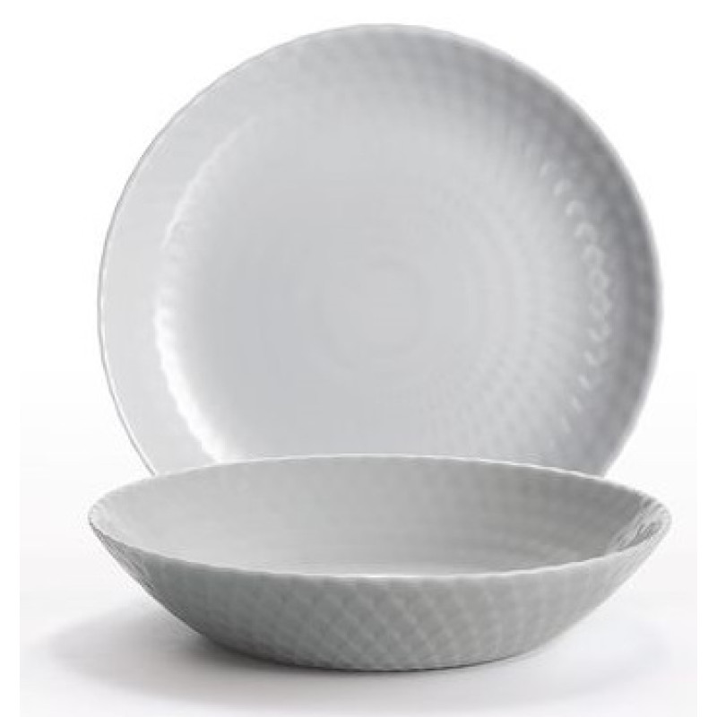 Ця колекція включає: обідні тарілки 25 см, супові 20 см і десертні 19 см, що ідеально поєднуються як з універсальними чашками і келихами, так і з салатниками ТМ Luminarc. Посуд серії Pampille доступний у білому, сірому, та бірюзовому кольорах. Його тонований колір в масі гарантує вам незрівнянну довговічність.