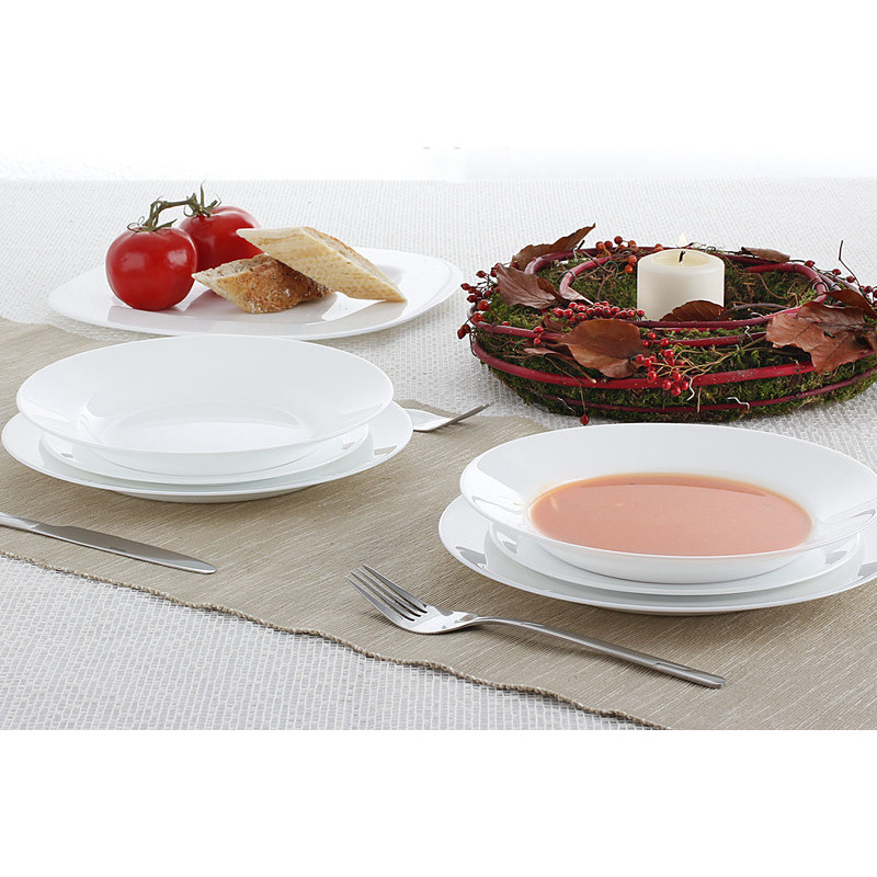 | Комплектація | Тарілка десертна 6 шт. (19 см) Тарілка обідня 6 шт. (24 см) Тарілка супова 6 шт. (22 см) |