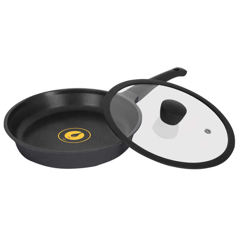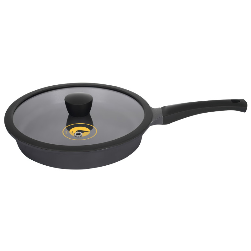 Прозора конструкція дозволяє стежити за приготуванням їжі, не знімаючи кришку зі сковороди. Силіконовий обідок має додаткові клапани для виведення пари та запобігає відколам.