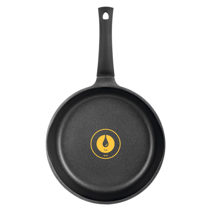 В кожну сковороду RINGEL інтегрована перша в світі система дозування олії. Найменша поділка системи відповідає 5 мл олії, а більша – 10 мл олії. За допомогою цієї системи ви зможете легко та швидко приготувати водночас здорові та смачні страви з використання мінімуму жиру та з максимальним збереженням корисних речовин у страві.