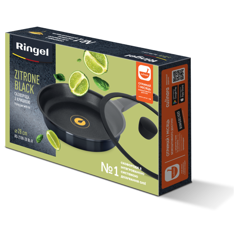 Сковорода серії Zitrone від Ringel - універсальний інструмент для приготування і розігрівання найрізноманітнішої їжі. Виготовлена з литого алюмінію, дана сковорода є міцним посудом зі швидким і рівномірним нагріванням, а довговічне антипригарне покриття MEGASTONE дозволяє користуватися практично будь-якими аксесуарами, зокрема з металу.