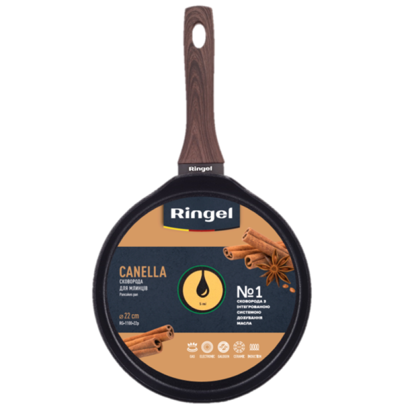 В кожну сковороду RINGEL інтегрована перша в світі система дозування олії. Найменша поділка системи відповідає 5 мл олії, а більша – 10 мл олії. За допомогою цієї системи ви зможете легко та швидко приготувати водночас здорові та смачні страви з використання мінімуму жиру та з максимальним збереженням корисних речовин у страві.