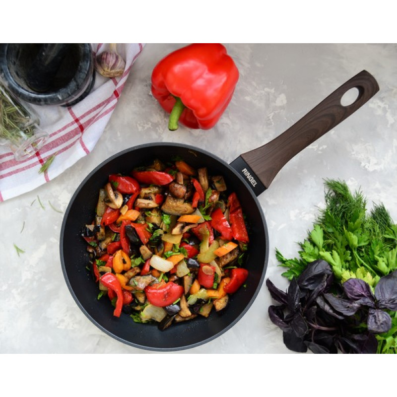 Зручність використання даної сковороди досягається завдяки і ергономічній ручці з бакеліту. Додаткове покриття soft-touch, крім тактильного задоволення, захищає руки від опіків і дозволяє не вислизає навіть з вологих долонь.
