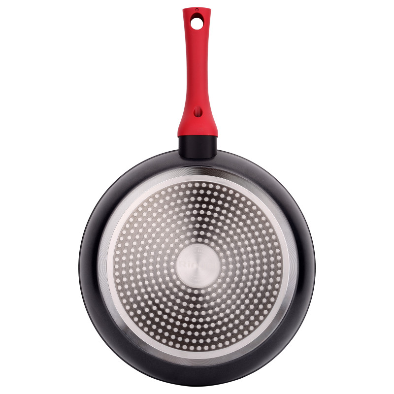 Зручність використання даної сковороди досягається завдяки ергономічній ручці з бакеліту. Додаткове покриття soft-touch, крім тактильного задоволення, захищає руки від опіків і дозволяє не вислизає навіть з вологих долонь. А червоний колір ручки подарує вашій кухні яскравий стильний акцент.