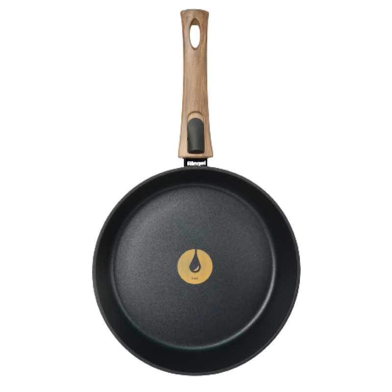 У кожну сковороду RINGEL інтегрована перша у світі система дозування олії. Найменша поділка системи відповідає 5 мл олії, а більша – 10 мл олії. За допомогою цієї системи ви зможете легко та швидко приготувати водночас здорові та смачні страви з використання мінімуму жиру та з максимальним збереженням корисних речовин у страві.