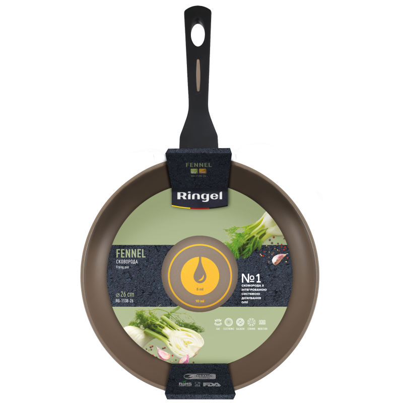 Асортимент продукції бренду RINGEL повністю задовольняє потреби в посуді та приборах найвимогливішої господині. До того ж, зовнішній вигляд усього посуду ТМ RINGEL витриманий в універсальній концепції стриманого та лаконічного дизайну, дозволяє самостійно комбінувати поєднання посуду на кожній кухні.