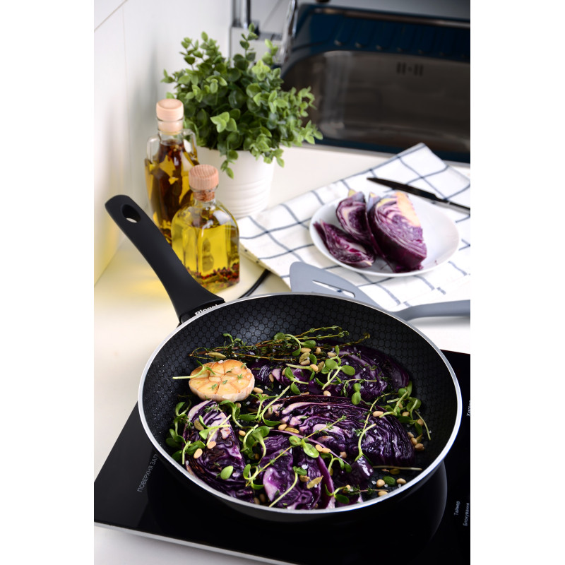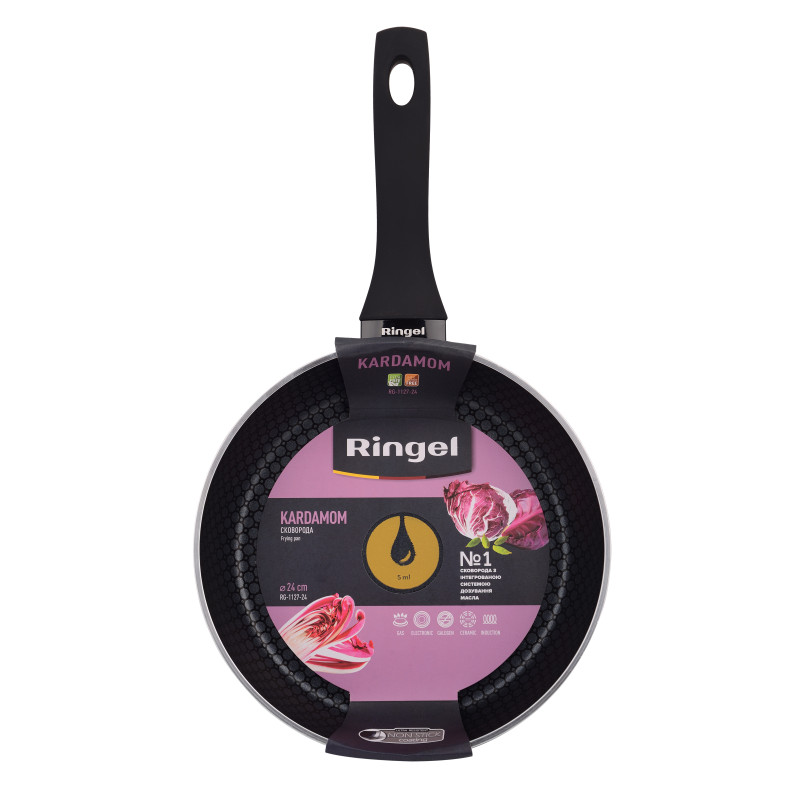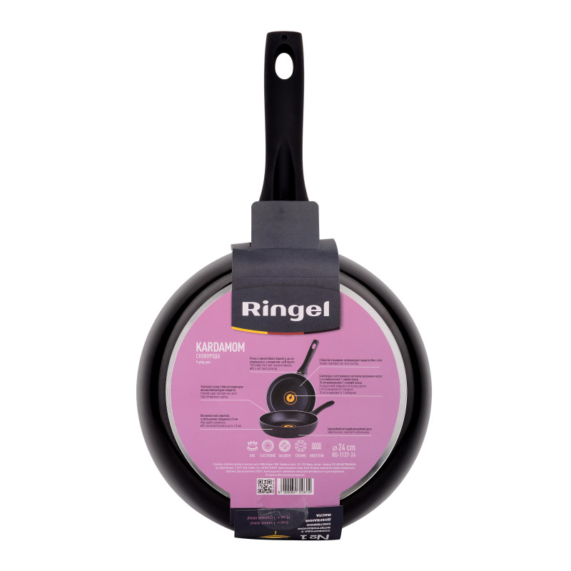 Сковорода KARDAMOM від Ringel - універсальний гаджет для приготування і розігрівання найрізноманітнішої їжі. Виготовлена з потовщеного високоякісного алюмінію, 4 мм ця сковорода є міцним посудом зі швидким і рівномірним нагріванням. Багатошарове антипригарне покриття забезпечить можливість готувати страви з використанням мінімальної кількості олії.