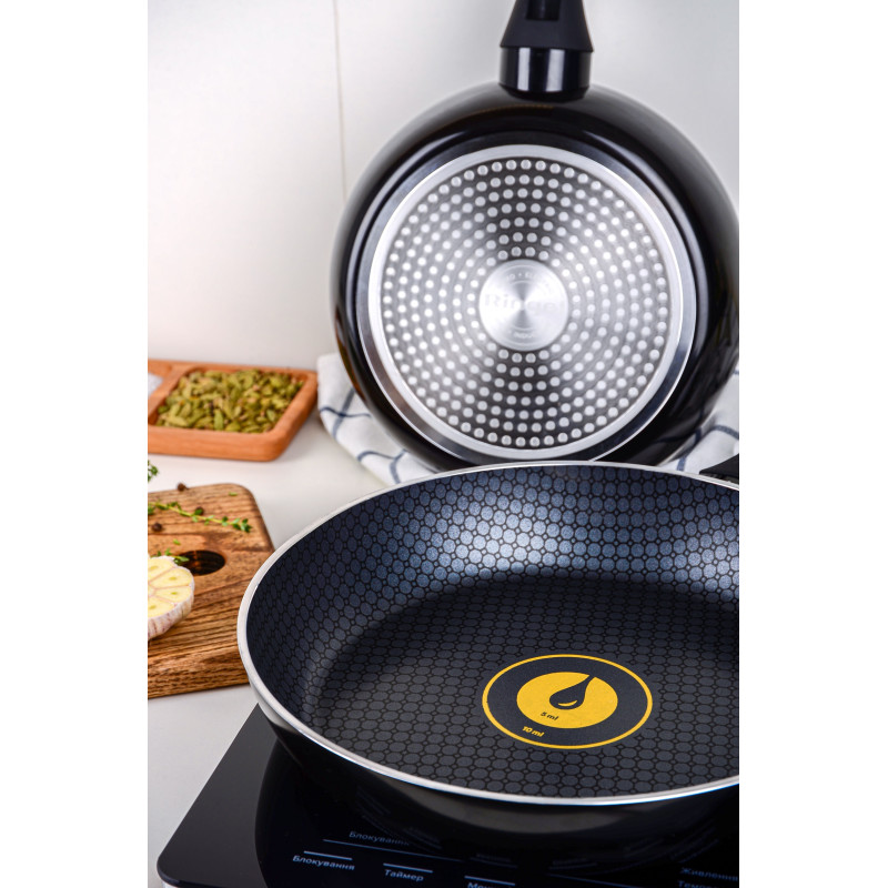 Високі борти сковорідок у поєднанні з відмінними властивостями покриття дають можливість готувати навіть найскладніші страви
