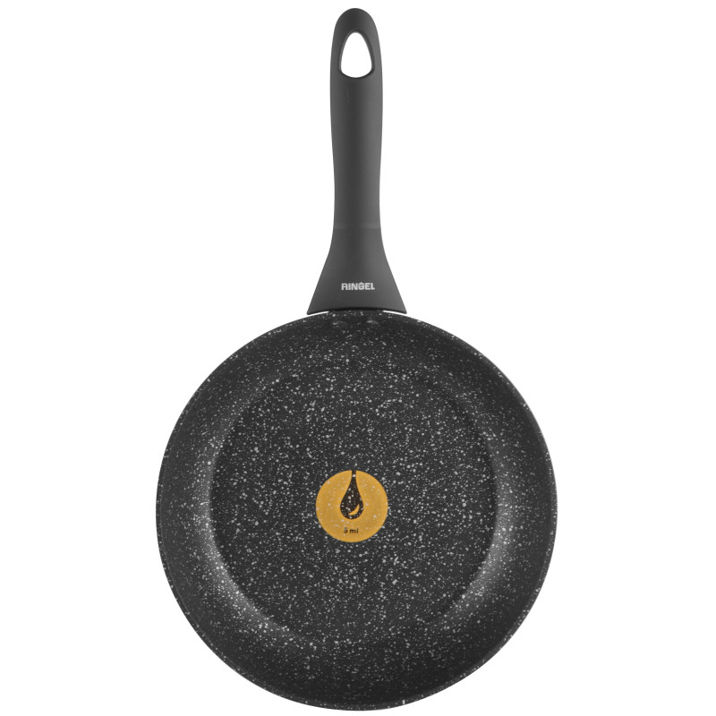 У кожну сковороду RINGEL інтегрована перша у світі система дозування олії. Найменша поділка системи відповідає 5 мл олії, а більша – 10 мл олії. За допомогою цієї системи ви зможете легко та швидко приготувати водночас здорові та смачні страви з використання мінімуму жиру та з максимальним збереженням корисних речовин у страві.