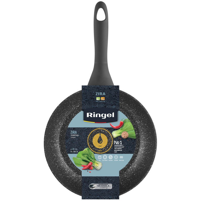 Сковорода Zira від Ringel - універсальний гаджет для приготування і розігрівання найрізноманітнішої їжі. Виготовлена з потовщеного високоякісного алюмінію, 3,2 мм ця сковорода є міцним посудом зі швидким і рівномірним нагріванням. Багатошарове антипригарне покриття забезпечить можливість готувати страви з використанням мінімальної кількості олії.
