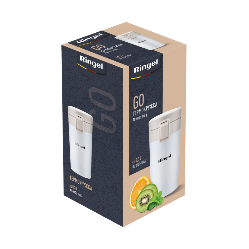 Термокружки RINGEL GO - це стильний дизайн у теплих відтінках. Виготовлені з високоякісної нержавіючої сталі. Мають ергономічну форму, яка зручно лежить у руці. Кнопковий механізм відкривання, захищає від проливання і дозволить вам пити свої улюблені напої в дорозі. Збереження температури гарячих напоїв до 6 годин, холодних - до 12 годин.