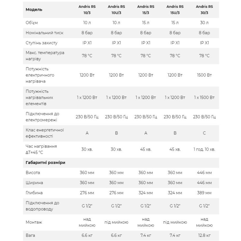 | Гарантія | 5 років - на бак, 2 роки на електричну частину |
