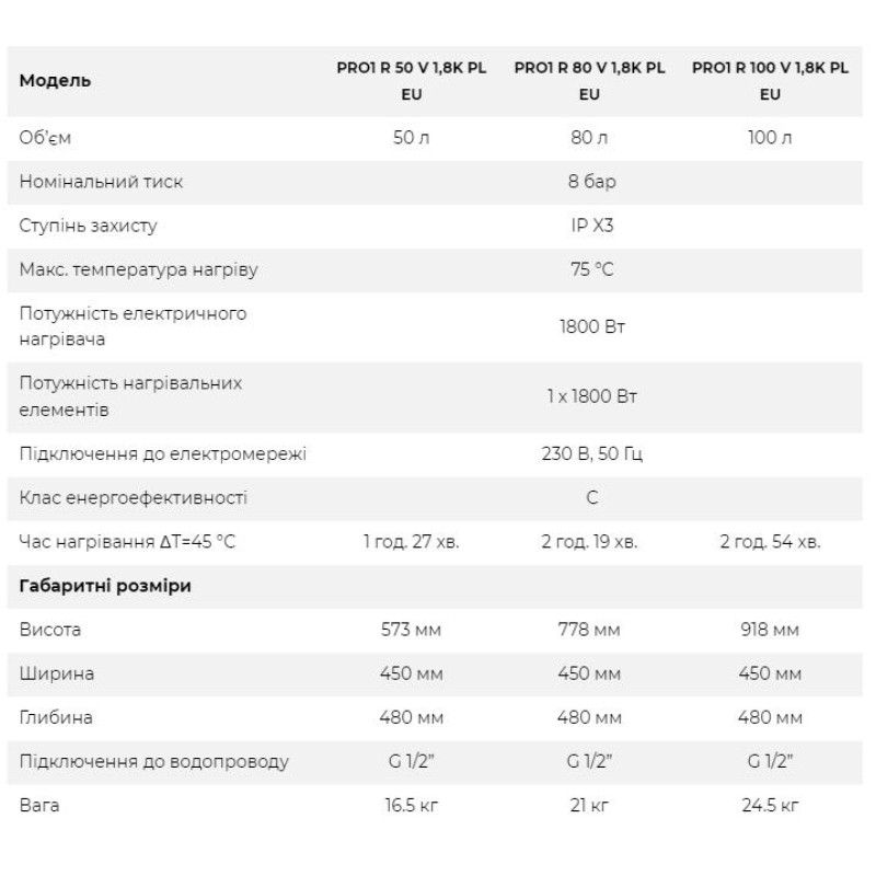 | Гарантія | 5 років - на бак, 2 роки на електричну частину |