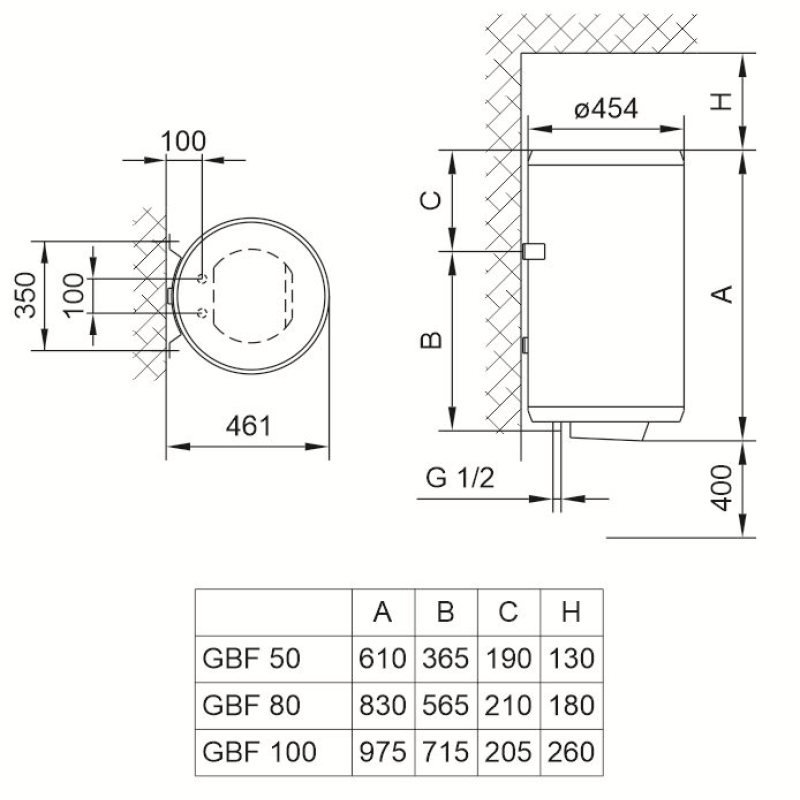 Водонагрівачі GBF UA призначенні для вертикального монтажу.