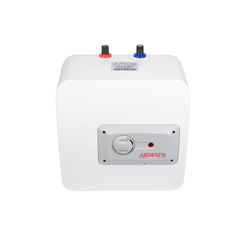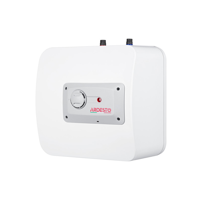 Накопичувальний електричний водонагрівач на 15 літрів з мокрим ТЕНом та механічним керуванням. Форм-фактор та нижнє підключення труб передбачає встановлення над мойкою.