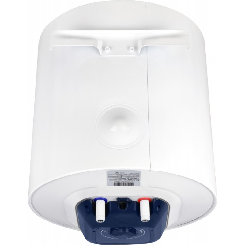 Електричний накопичувальний водонагрівач Ariston серії BLU1 R DRY MECHANICAL потужністю на 1500 Вт і об'ємом на 50 л. Форма кругла, монтаж вертикальний. Має механічний термостат. Термоізоляції з поліуретану товщиною 18.5 мм з боків і 15 мм зверху бака. Нагрівальний елемент - сухий ТЕН.