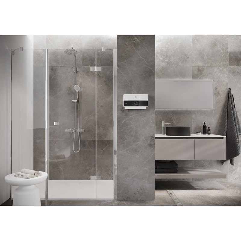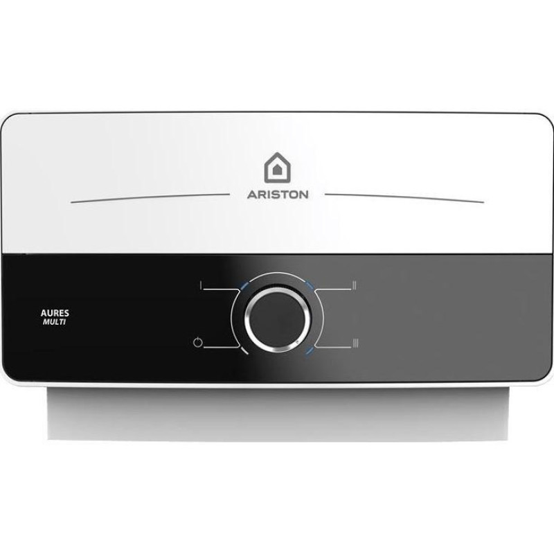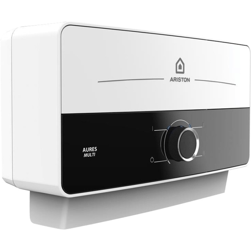 Ariston AURES SM 7.7 — проточний електричний водонагрівач потужністю 7.7 кВт із продуктивністю 4.4 л/хв. Оснащений механічним керуванням, призначений для горизонтального монтажу. Компактний корпус у біло-чорному виконанні поєднує стиль і практичність.