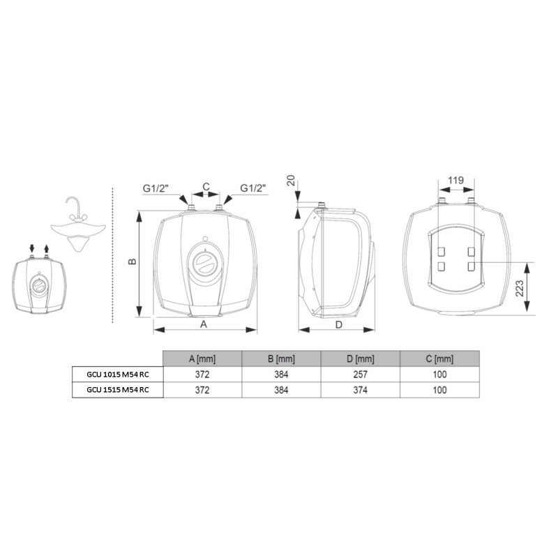 Малолітражні та компактні водонагрівачі серії SimpatEco М54 представлені об’ємами 10 і 15 літрів моделями для встановлення як під раковиною, так і над раковиною.